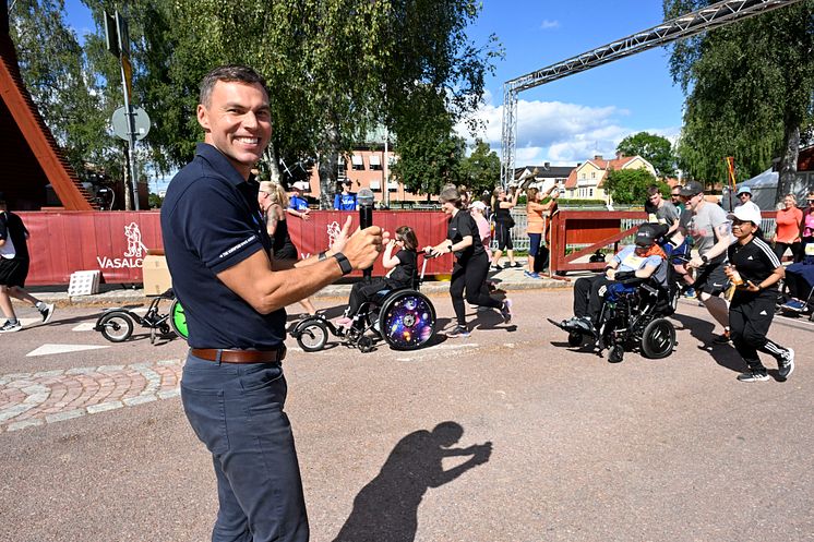 Astronaut Marcus Wandt var på plats i Mora och agerade starter för Funkisvasan 2024.