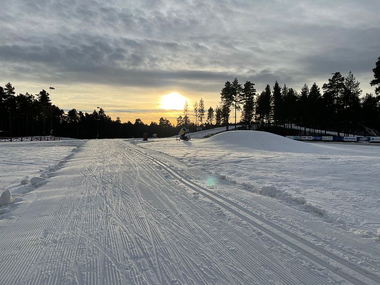 Snö på Mora skidstadion 2021.