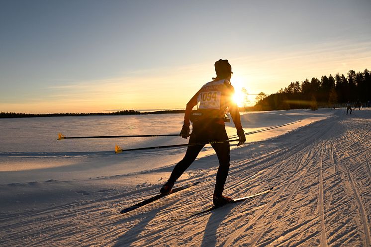 I Öppet Spår måndag är det fri stil som gäller, deltagarna kan åka skejt eller klassisk stil. Här vid soluppgången i Smågan.