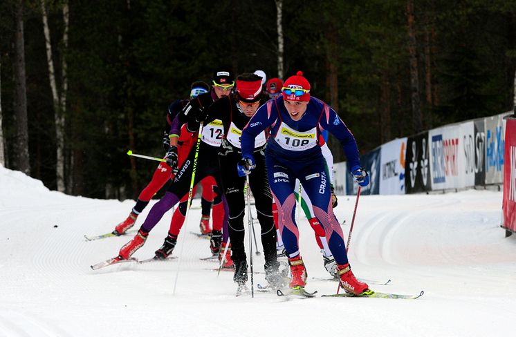 Här leder IFK Mora SK:s Calle Halfvarsson tätklungan. Calle slutade tvåa efter segraren Ted Armgren från Vilhelmina IK.