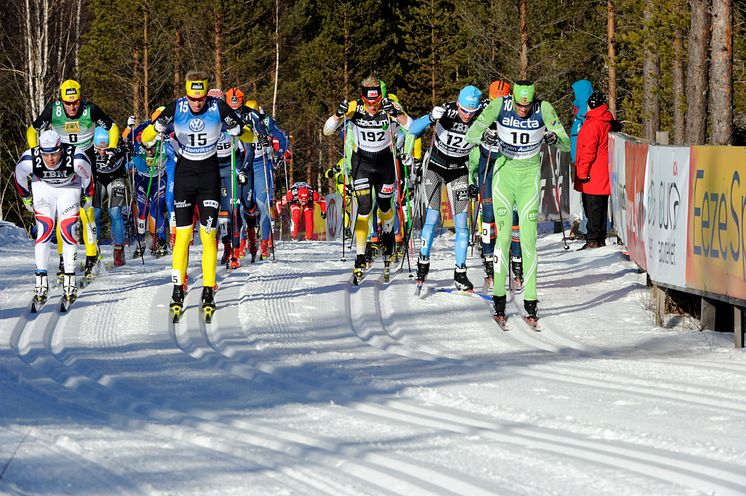 Tätgruppen vid Lundbäcksbacken. Blivande segraren Jörgen Aukland till höger (nr 10).