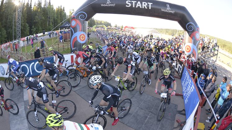Elitledets start av Cykelvasan 90 i Berga by, Sälen 15 augusti 2015 kl 08.00