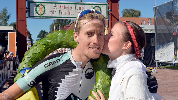 Alexander Wetterhall vann Cykelvasan 2015. Segerpuss från kranskullan Viktoria Stärner.