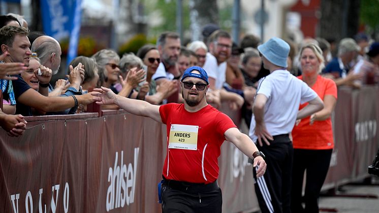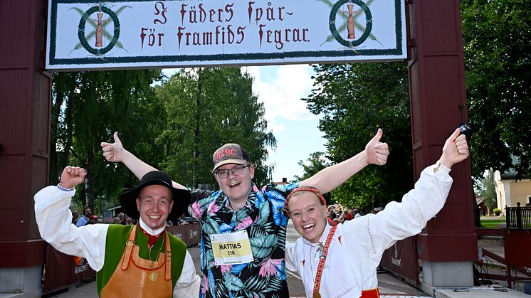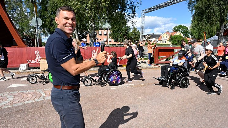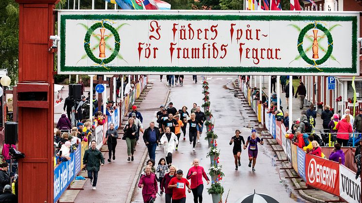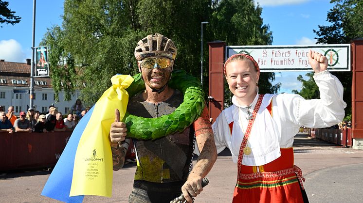 Astronaut Marcus Wandt lämnar över Vasaloppsmedalj och nummerlapp