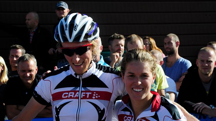 Förutom elitåkare så engagerar CykelVasan även en hel rad andra kändisar. Några av de som deltar i lördagens 90 km lopp kör också uppvisningsloppet CykelVasasprinten som avgörs på fredag 16 augusti kl 15.30 i Lindvallen. I lag med eliten får vi bland annat se den tidigare långdistansspecialisten Jenny Hansson, rallyessen Richard Göransson och Patrik Sandell, Vasaloppsvinnarna Daniel Tynell och Staffan Larsson samt rockstjärnan Christian Grahn från The Hives. På bilden syns alpinstjärnan Maria Pietilä Holmner och norska cyklisten Ole Christian Fagerli från CykelVasasprinten 2011.